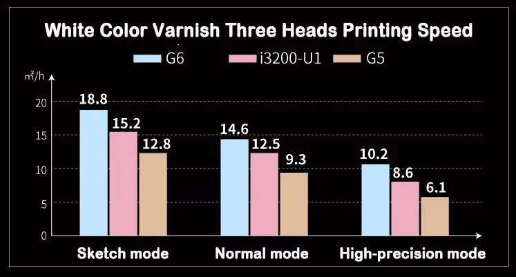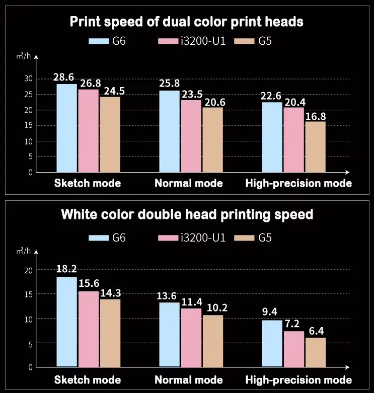 Ink Colors | Four-color / Six-color C+M+Y+K+LM+LC+W (White) + V (Gloss) Supporting Dual White Printing |