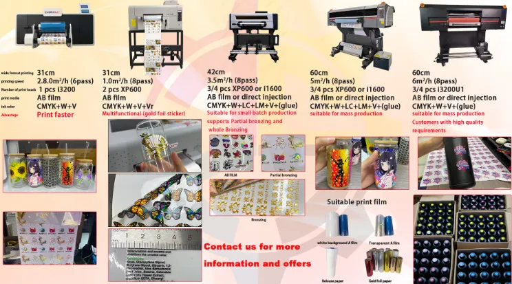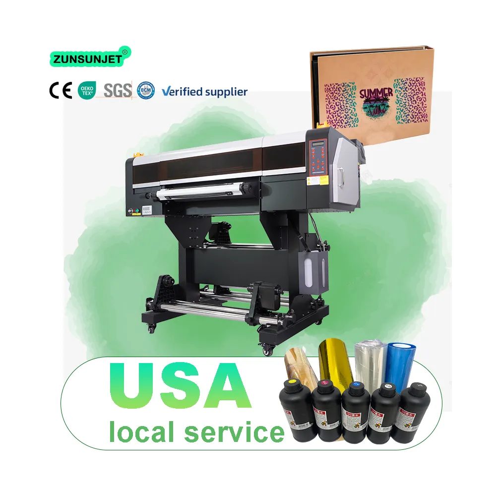 zunsun 2 in 1 UV Sticker DTF printer A1 takes printing technology to a new height, which is the first one to integrate the laminating process into the printing process. Shapes, sizes and uneven surfaces are no longer limitations of printing in front of this product.