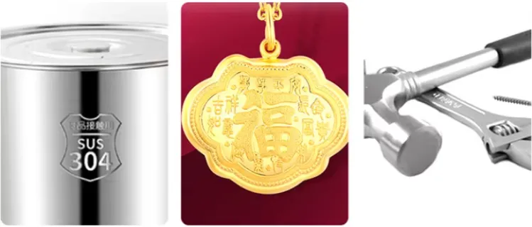 Fiber laser marking machine can mark on metal materials and some non-metal materials: Metal materials: stainless steel, carbon steel, iron, brass, cooper, alloy, aluminum, gold and silver etc. Non-metal materials: ABS, PVC , PPR and PE etc.