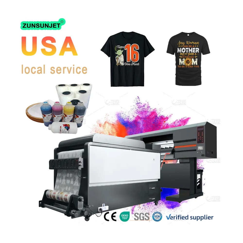 A: Our printer does not come with ink, if you need to buy with the ink together, please contact us. We also provide the spare parts, and printing materials, such as PET film, dtf powder, etc. If you need, please contact us.