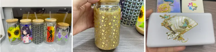 2. most material: plastic, glass, ceramics, paper, paperboard, metal, leather and so on.such as pen, notebook, phone case, mouse, vase, bottle, can, mug, packing box, purse, pad, USB flash disk, electric appliance.