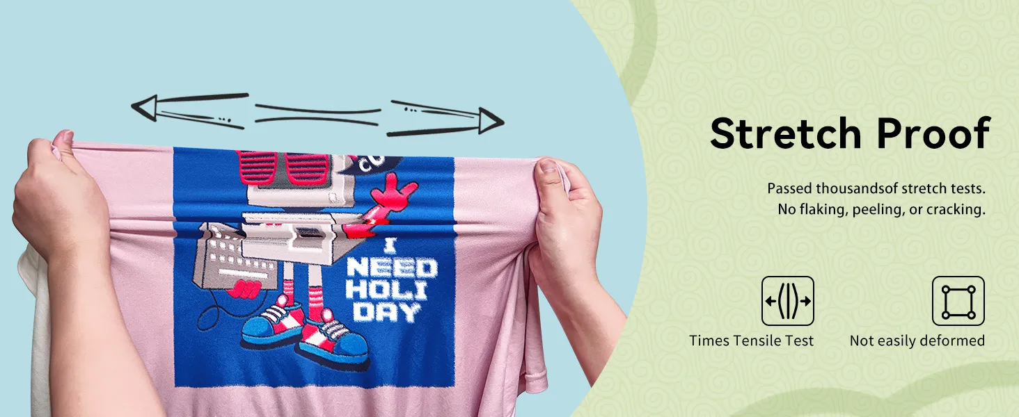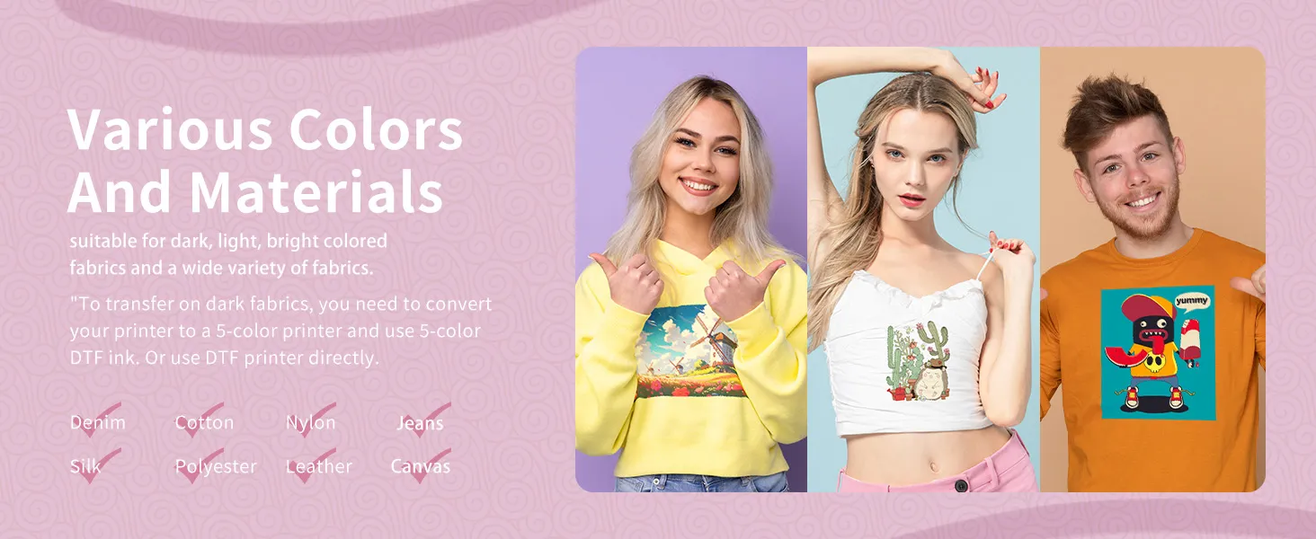 DTF pretreat transfer powder works with almost all types of fabrics with good quality results! (Lycra, cotton, nylon, swimsuit fabrics, high-elasticity fabrics, chemical fiber or shoes , hats, bags etc)