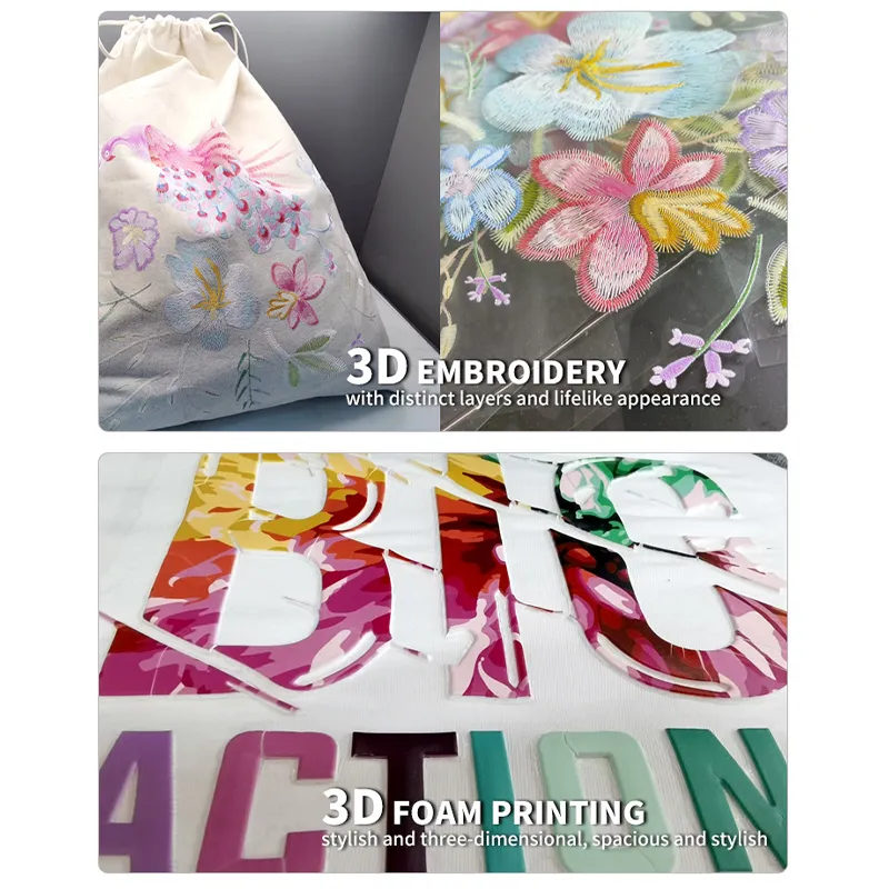 Printing speed | 3D Embroidery:5-6㎡/H 3D Silicone label:2-3㎡/H |